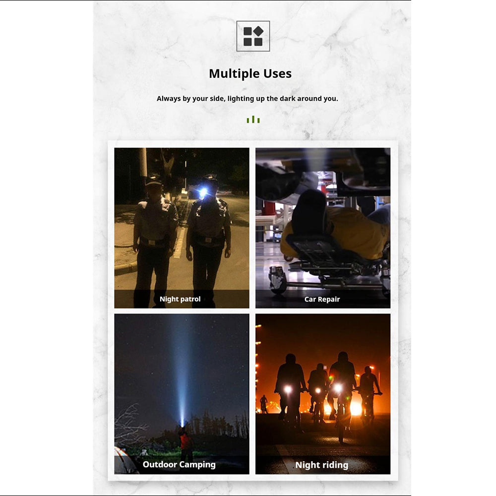 4. Li-ion battery: when battery full load(40mAh), can supply 3LED continuous lighting for 120 minutes